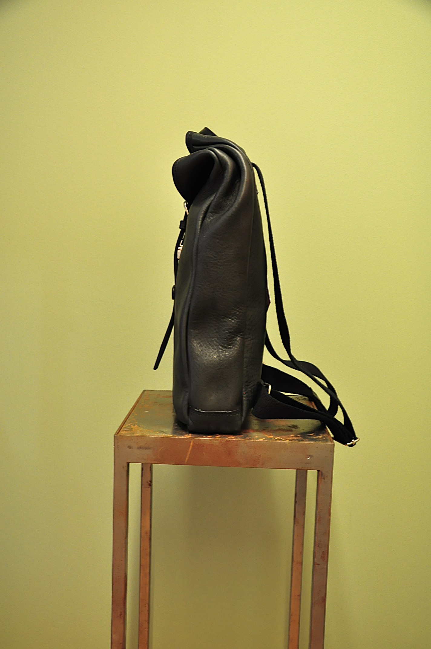 Die Kombination des Leders und der Stoffriemen, die darauf farblich abgestimmten Nähte, und die Verschlüsse sowie Nieten aus Metall machen den Rucksack einzigartig. Einfach, edel, robust, langlebig und treu soll er sein. «Der Wert des Werks!»