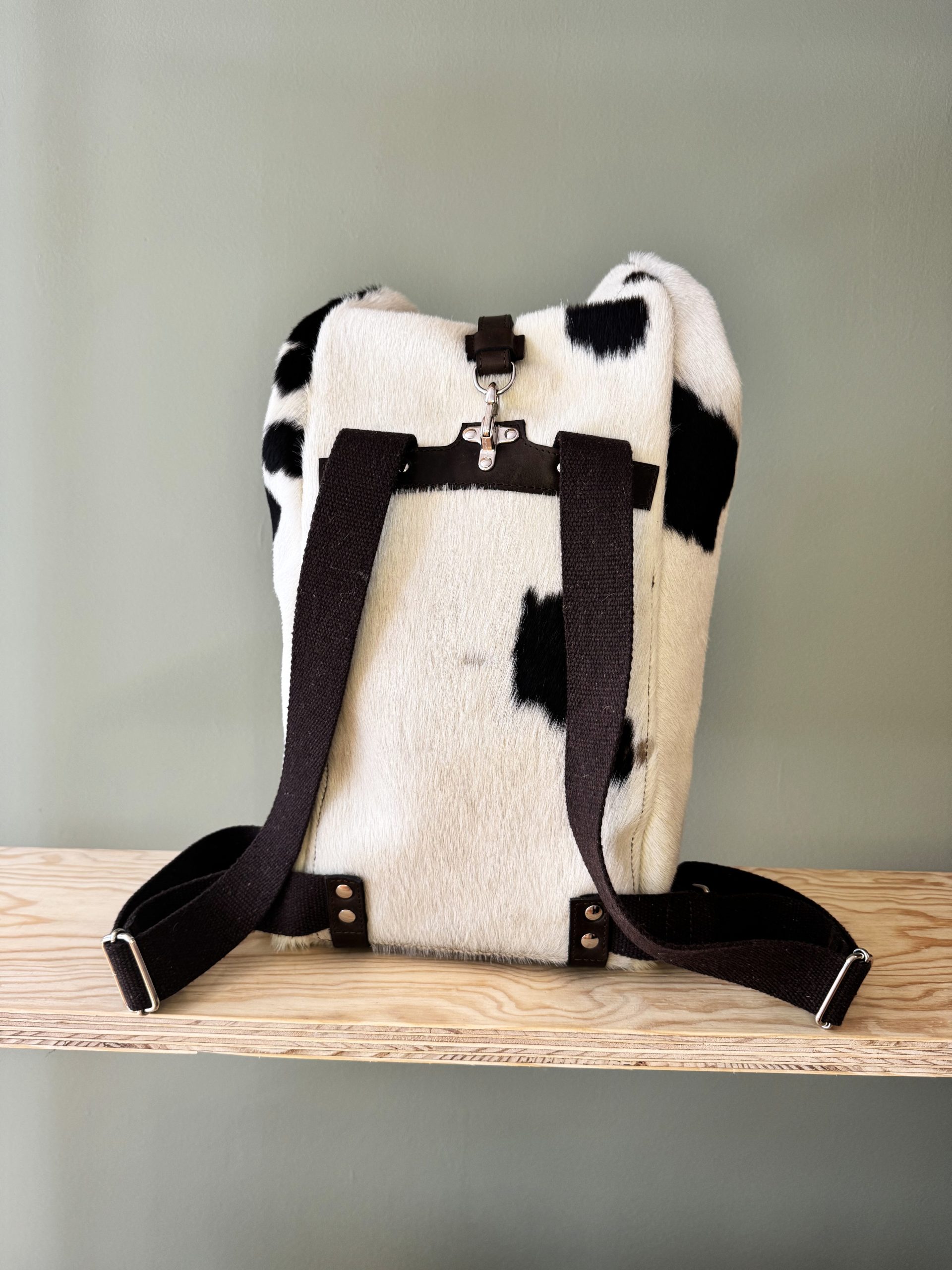 Die Kombination des Leders und der Stoffriemen, die darauf farblich abgestimmten Nähte, und die Verschlüsse sowie Nieten aus Metall machen den Rucksack einzigartig. Einfach, edel, robust, langlebig und treu soll er sein. «Der Wert des Werks!»