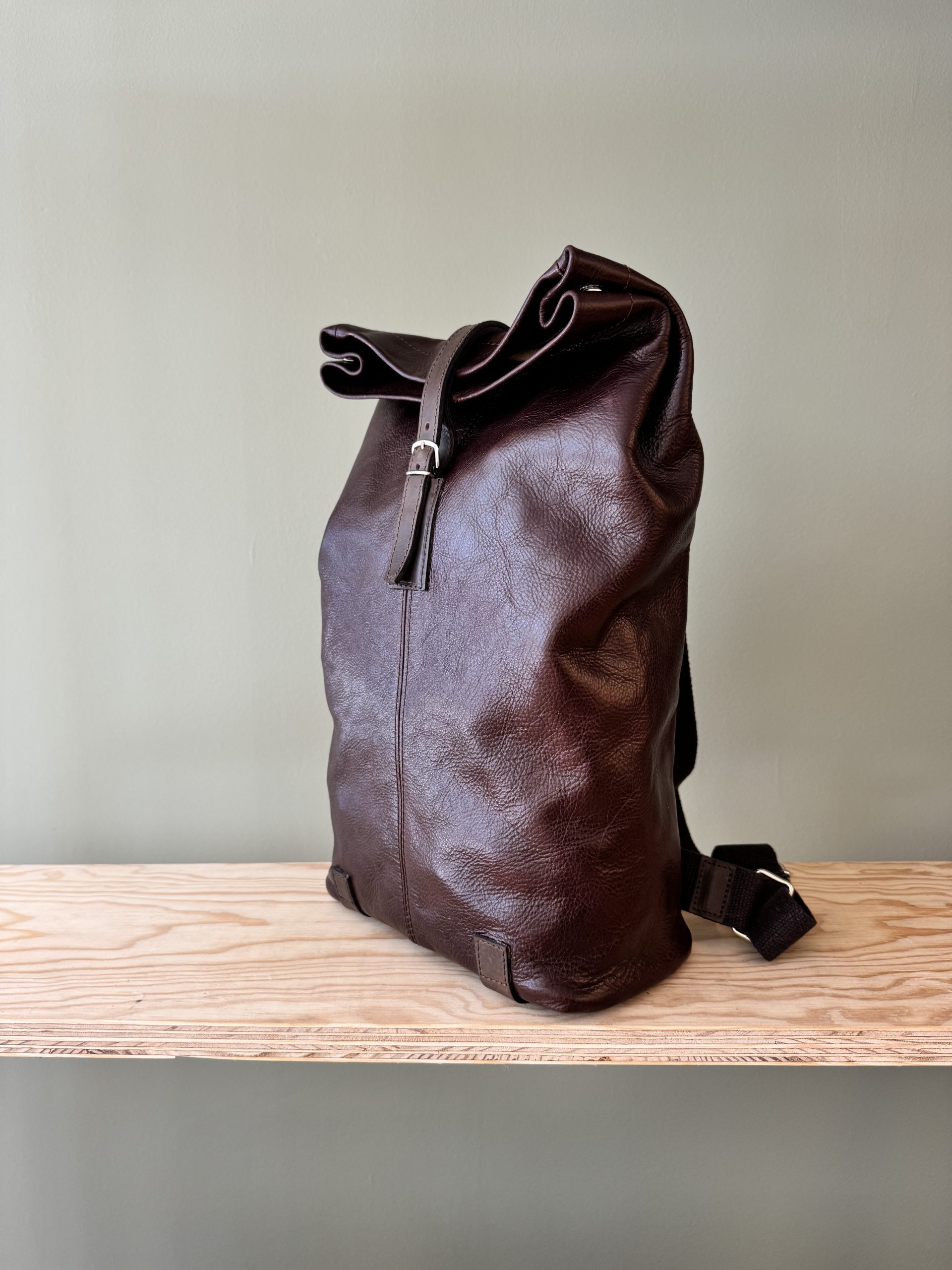 Die Idee, den sich mit meinen Lebenserfahrungen füllenden Rucksack in einem möglichst ausgewogenen Füllverhältnis zu belassen, das unwichtig Gewordene loszuwerden und Inhalte zu ergänzen, trage ich seit langer Zeit, wenn nicht gar seit meiner Geburt in irgendeiner Art in mir. Die ständige aktive Bewirtschaftung des eigenen Rucksacks ist herausfordernd, nie gewöhnlich und eine nicht immer leichte Aufgabe. Ob gefüllt oder gelegentlich wieder entleert, ein nachlässig beladener Rucksack, der möglicherweise unangenehme Erlebnisse unbeachtet in sich trägt, birgt die Gefahr, das erlebte Leben des Tragenden schwer oder bisweilen untragbar werden zu lassen. Ich tue gut daran, meinem Lebensgepäck ab und an Beachtung zu schenken. Der kritische Blick auf den Füllungsgrad bzw. Inhalt des Rucksacks, des Lebens ist zeitweilig unmöglich, womöglich beschwerlich, aber alleweil lohnenswert. In Anlehnung an die Theorie von Platon soll mein Rucksack in physischer Form Ausdruck meiner inneren Idee sein. Die Vorstellung davon, wie der Rucksack in einer physischen Gestalt, dreidimensional in Erscheinung treten soll, hat sich tief in mir verankert. Das Produkt soll jederzeit Ausdruck sein von dem, was ich in mir herumtrage. Keinesfalls soll er jedoch zu viel über mich verraten. Das Geheimnis ist zu behüten und zu wahren. In gewisser Analogie zu meinem Wesen soll die physische Form einfach, funktional, robust, zeitlos und gleichwohl modern und edel sein. Das in Frage kommende Material muss natürlich, hochwertig, beständig, beharrlich, beweglich und traditionell sein. Laptop, Ordner, aber auch Babywindeln, Kinderspielzeug, Lehrbücher oder Schreibzeug müssen darin Platz haben. Das Produkt mit vorgenannten Eigenschaften darf einzig und allein durch ein handwerkliches Erzeugnis entstanden sein. Ein industriell gefertigtes, gar serienmässig hergestelltes Produkt würde meinen Absichten zuwiderlaufen. Dieser Idee sind keine ökonomischen Argumente geschuldet, sondern emotionale.