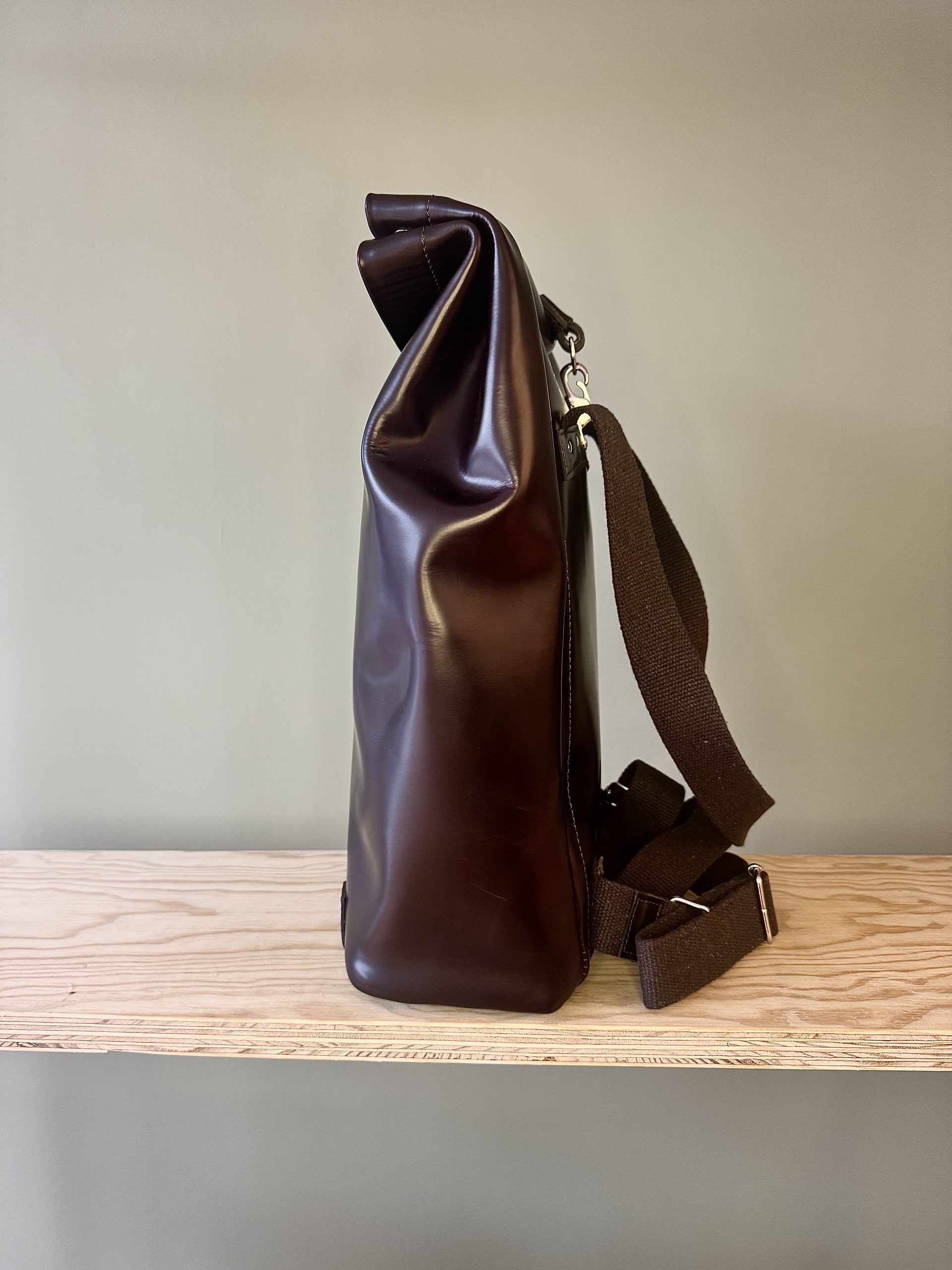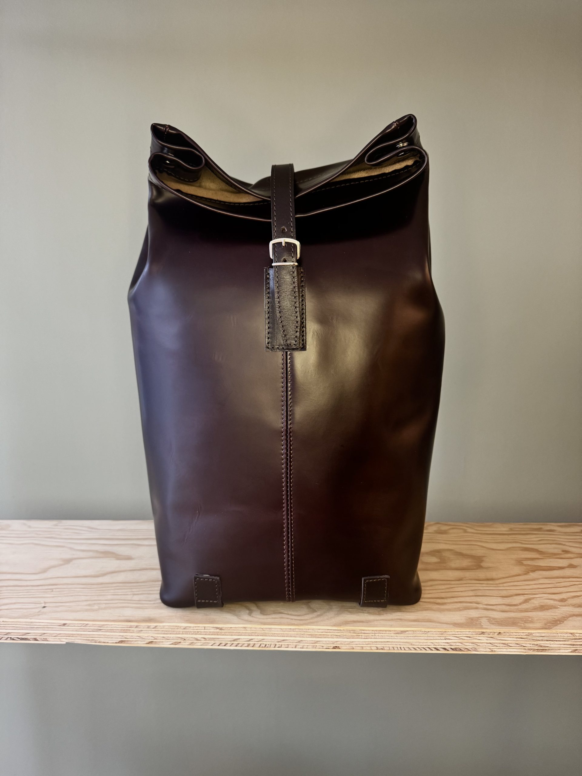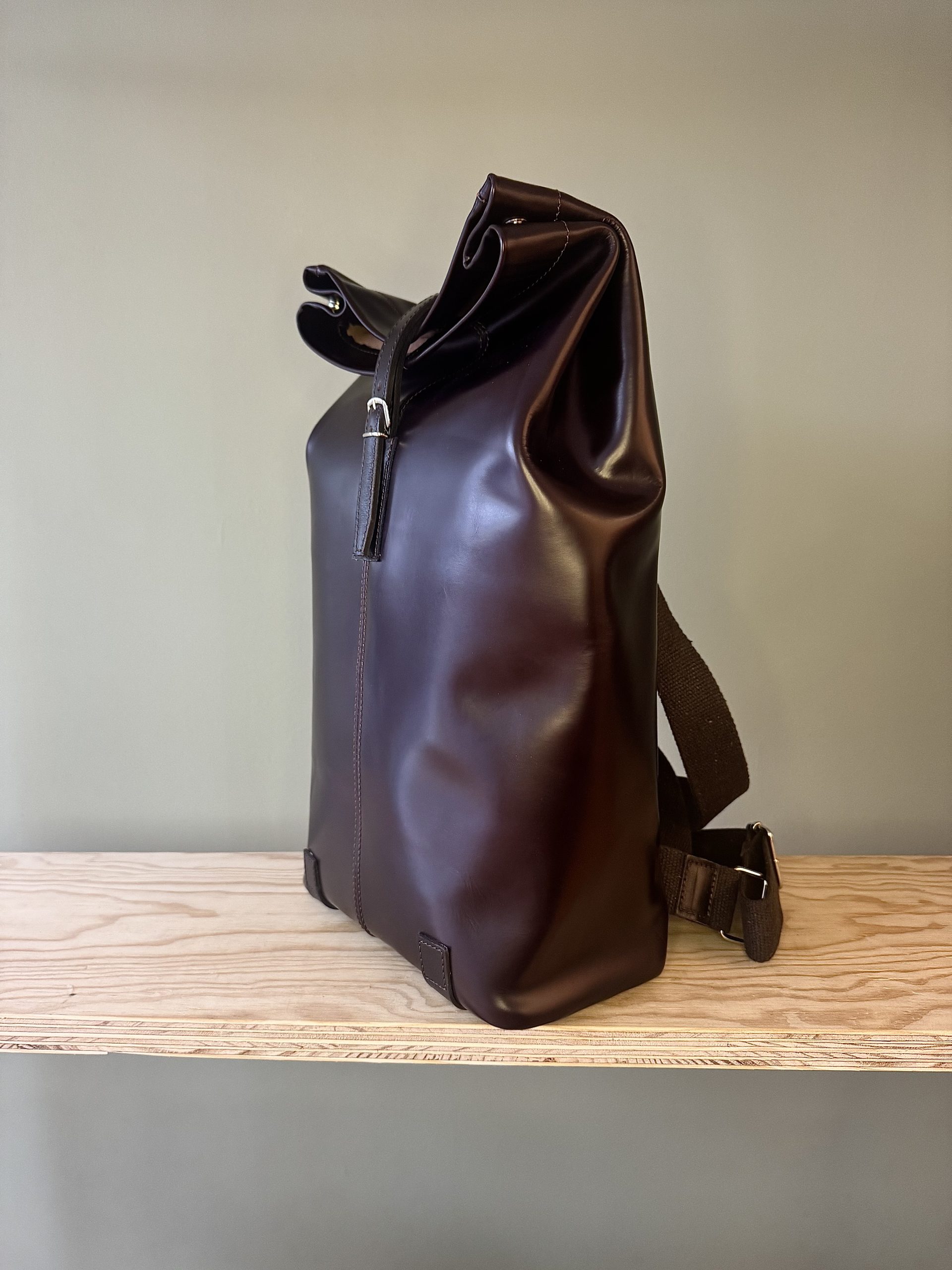 Die Idee, den sich mit meinen Lebenserfahrungen füllenden Rucksack in einem möglichst ausgewogenen Füllverhältnis zu belassen, das unwichtig Gewordene loszuwerden und Inhalte zu ergänzen, trage ich seit langer Zeit, wenn nicht gar seit meiner Geburt in irgendeiner Art in mir. Die ständige aktive Bewirtschaftung des eigenen Rucksacks ist herausfordernd, nie gewöhnlich und eine nicht immer leichte Aufgabe. Ob gefüllt oder gelegentlich wieder entleert, ein nachlässig beladener Rucksack, der möglicherweise unangenehme Erlebnisse unbeachtet in sich trägt, birgt die Gefahr, das erlebte Leben des Tragenden schwer oder bisweilen untragbar werden zu lassen. Ich tue gut daran, meinem Lebensgepäck ab und an Beachtung zu schenken. Der kritische Blick auf den Füllungsgrad bzw. Inhalt des Rucksacks, des Lebens ist zeitweilig unmöglich, womöglich beschwerlich, aber alleweil lohnenswert. In Anlehnung an die Theorie von Platon soll mein Rucksack in physischer Form Ausdruck meiner inneren Idee sein. Die Vorstellung davon, wie der Rucksack in einer physischen Gestalt, dreidimensional in Erscheinung treten soll, hat sich tief in mir verankert. Das Produkt soll jederzeit Ausdruck sein von dem, was ich in mir herumtrage. Keinesfalls soll er jedoch zu viel über mich verraten. Das Geheimnis ist zu behüten und zu wahren. In gewisser Analogie zu meinem Wesen soll die physische Form einfach, funktional, robust, zeitlos und gleichwohl modern und edel sein. Das in Frage kommende Material muss natürlich, hochwertig, beständig, beharrlich, beweglich und traditionell sein. Laptop, Ordner, aber auch Babywindeln, Kinderspielzeug, Lehrbücher oder Schreibzeug müssen darin Platz haben. Das Produkt mit vorgenannten Eigenschaften darf einzig und allein durch ein handwerkliches Erzeugnis entstanden sein. Ein industriell gefertigtes, gar serienmässig hergestelltes Produkt würde meinen Absichten zuwiderlaufen. Dieser Idee sind keine ökonomischen Argumente geschuldet, sondern emotionale.